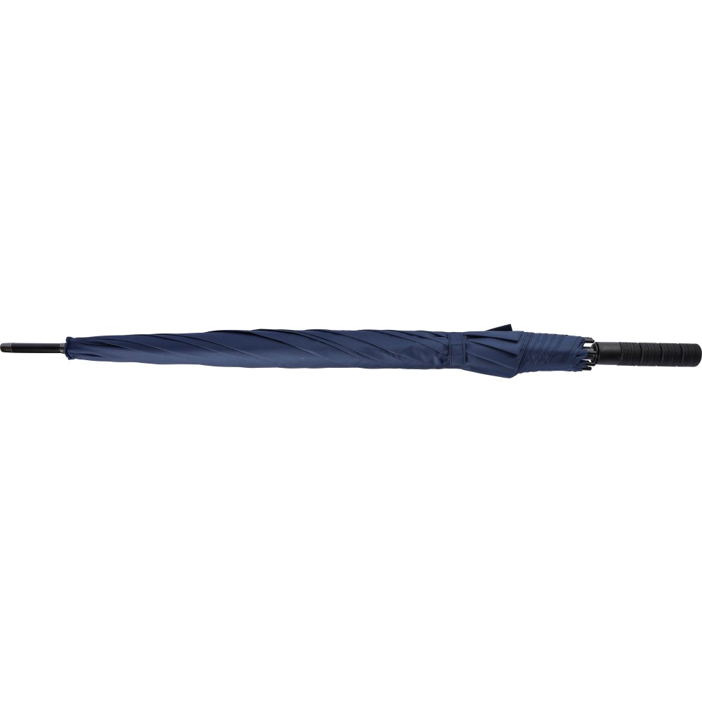 rPET 190T automatic golf umbrella (27 inch) with eight panels and a fiberglass frame. Features a push-button opening and an rPET label on the Velcro closure. Windproof. [ENG] Logodruck: Siebdruck