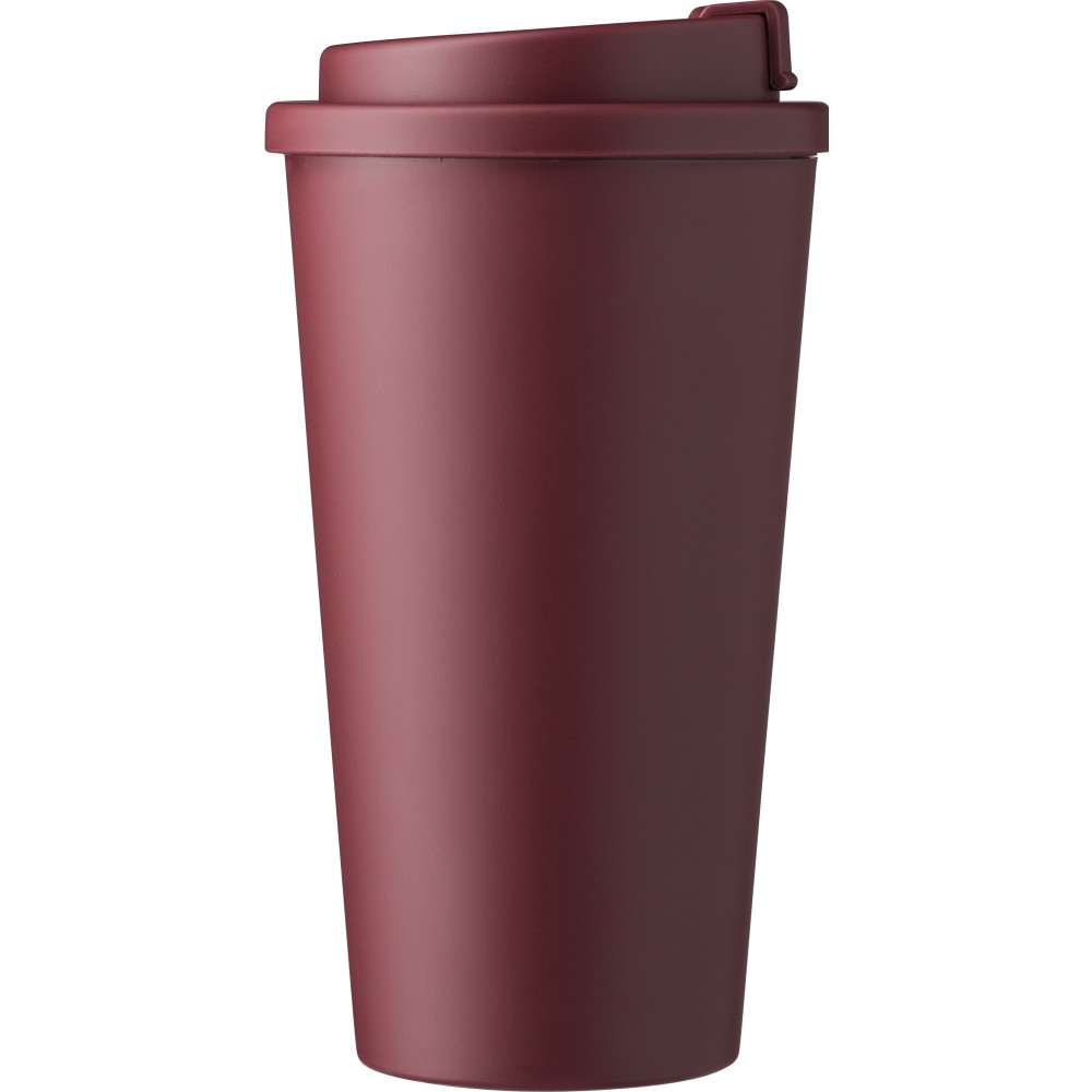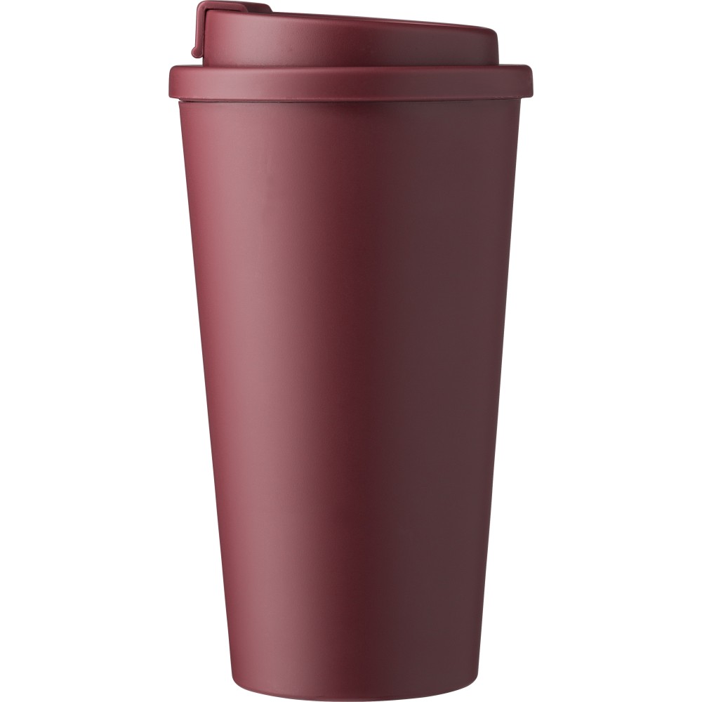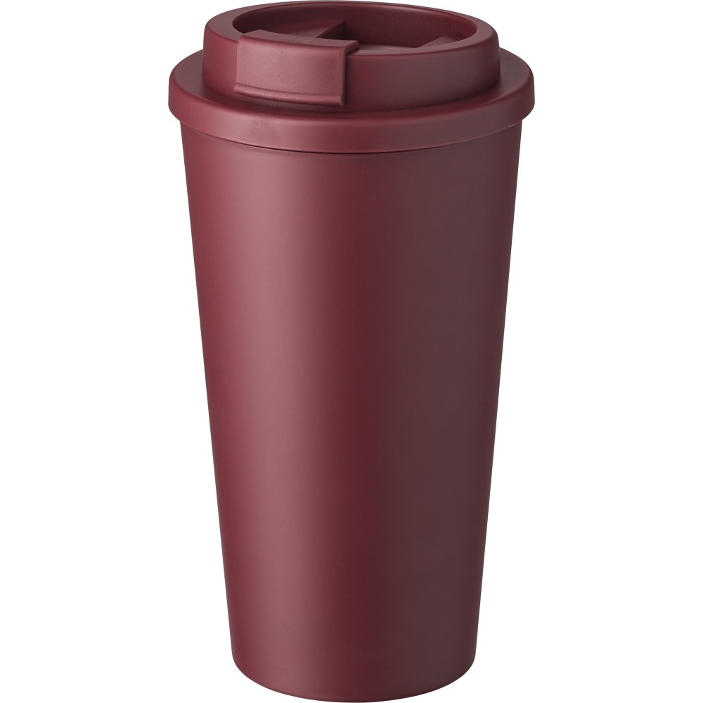 PP-To-go-Becher (475 ml) mit Schraubdeckel. Mit verschließbarer Trinköffnung. Er ist sowohl für heiße als auch für kalte Getränke geeignet. Logodruck: Tampondruck