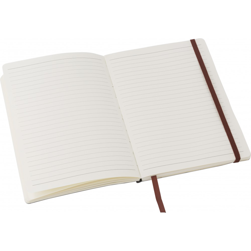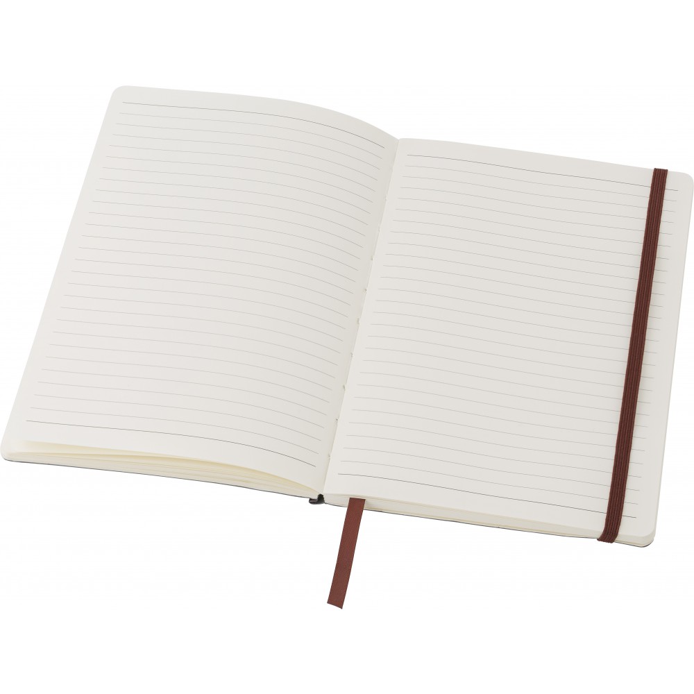 Das Notizbuch 'Storyteller' hat einen PU-Umschlag mit Softtouch-Oberfläche und beinhaltet 80 linierte Blätter, ein Fach auf der Innenseite des Umschlags, ein Lesezeichen sowie ein elastisches Band zum Verschließen. Logodruck: Tampondruck