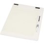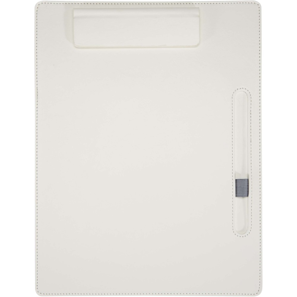 The Clast clipboard combines a sleek PU leather design with practical features for both meetings and everyday use. It fits standard A4 pages and includes a magnetic clip, stitched edges, and a built-in pen loop. Inside are 26 lined sheets of 65 g/m2 paper along with a ballpoint pen made with a recycled plastic upper barrel and an RCS certified recycled aluminium lower barrel. The Juana ballpoint pen is also available separately. Clipboard size: 25.5 × 33 cm. Pen ink colour: black. [ENG] Logodruck: Siebdruck
