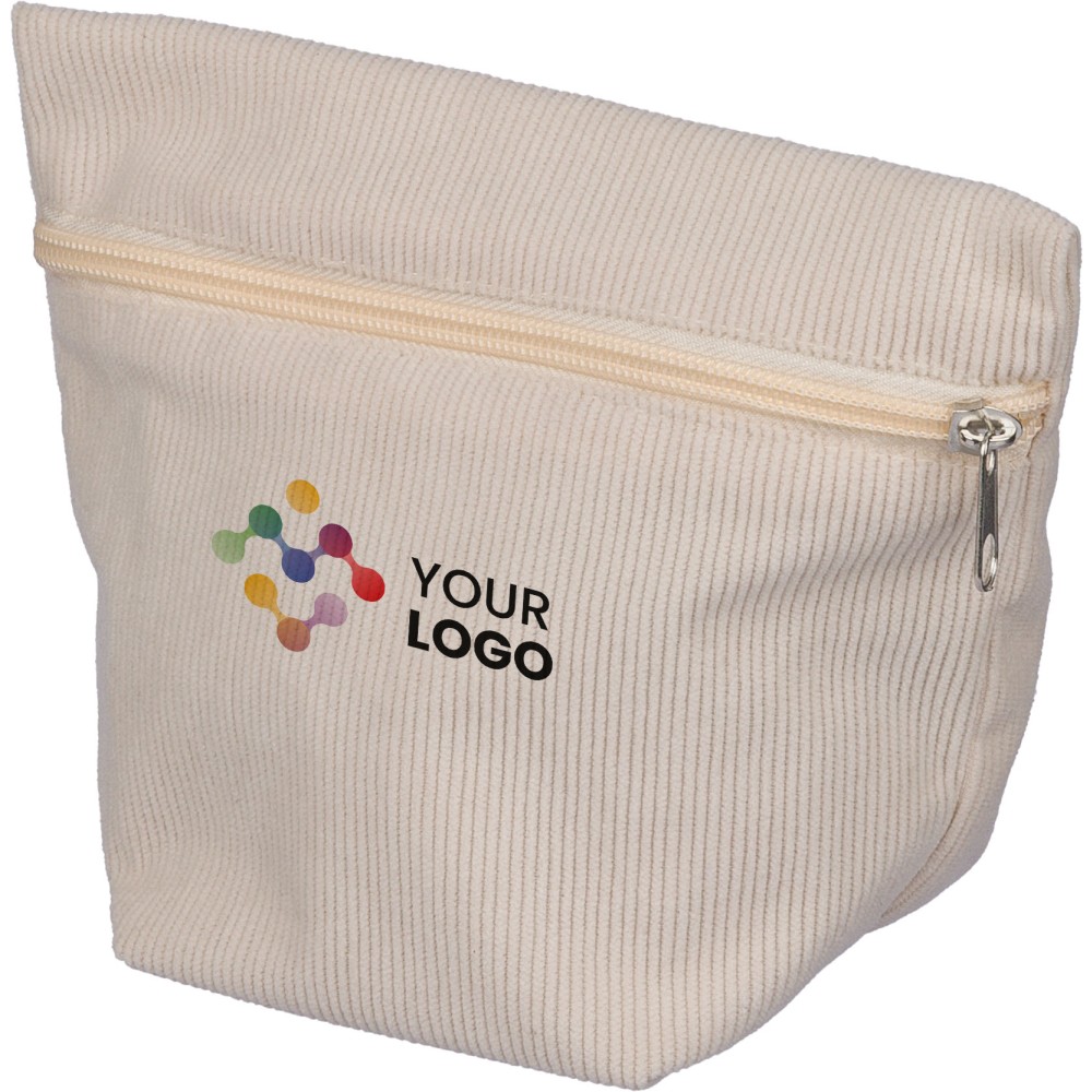 Corduroy zippered cosmetic pouch with one main compartment and secure zipper closing. [ENG] Logodruck: Siebdruck