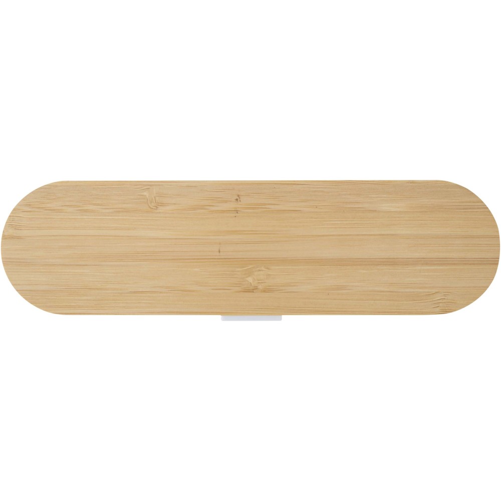 A reusable cutlery set with a bamboo lid, including a fork, knife, spoon, straw, and straw cleaner ? ideal for meals on the go. Compact and easy to clean, it?s perfect for lunch boxes, travel, or office use. [ENG]