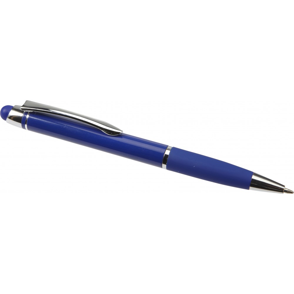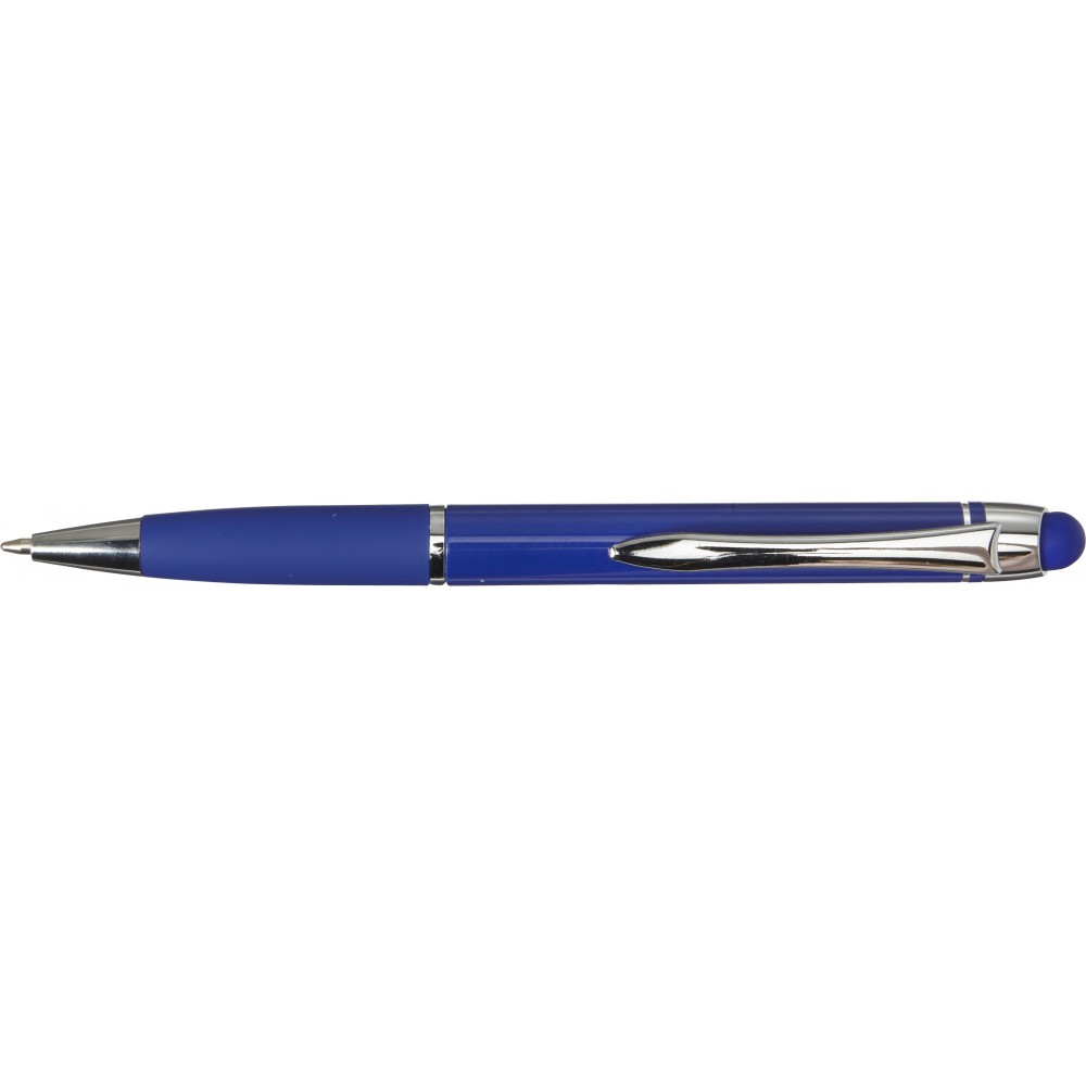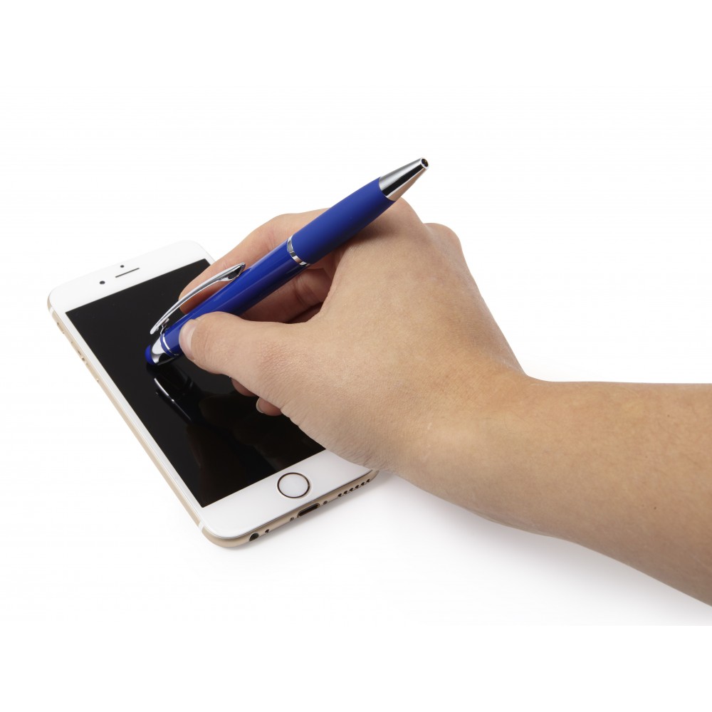 Der Kugelschreiber 'Adria' ist aus Metall hergestellt, ist farbig, mit silbernen Elementen am Clip, dem Zierring und der Spitze. Er verfügt über eine gummierte Griffzone und einen Touchpen. Logodruck: Gravur, Tampondruck, UV Druck