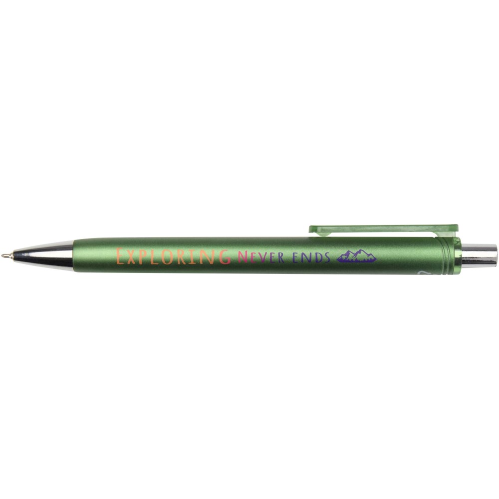 The Feld ballpoint pen with metallic finish combines everyday functionality with a sleek look. Made from RCS certified recycled ABS plastic, it features a shiny metal sprayed finish with polished chrome accents. Its smooth push mechanism and semi-gel ink refill ensure a comfortable and smooth writing experience. Pen ink colour: black. Writing length: 500 m. Niz size: 0.7 mm. [ENG]