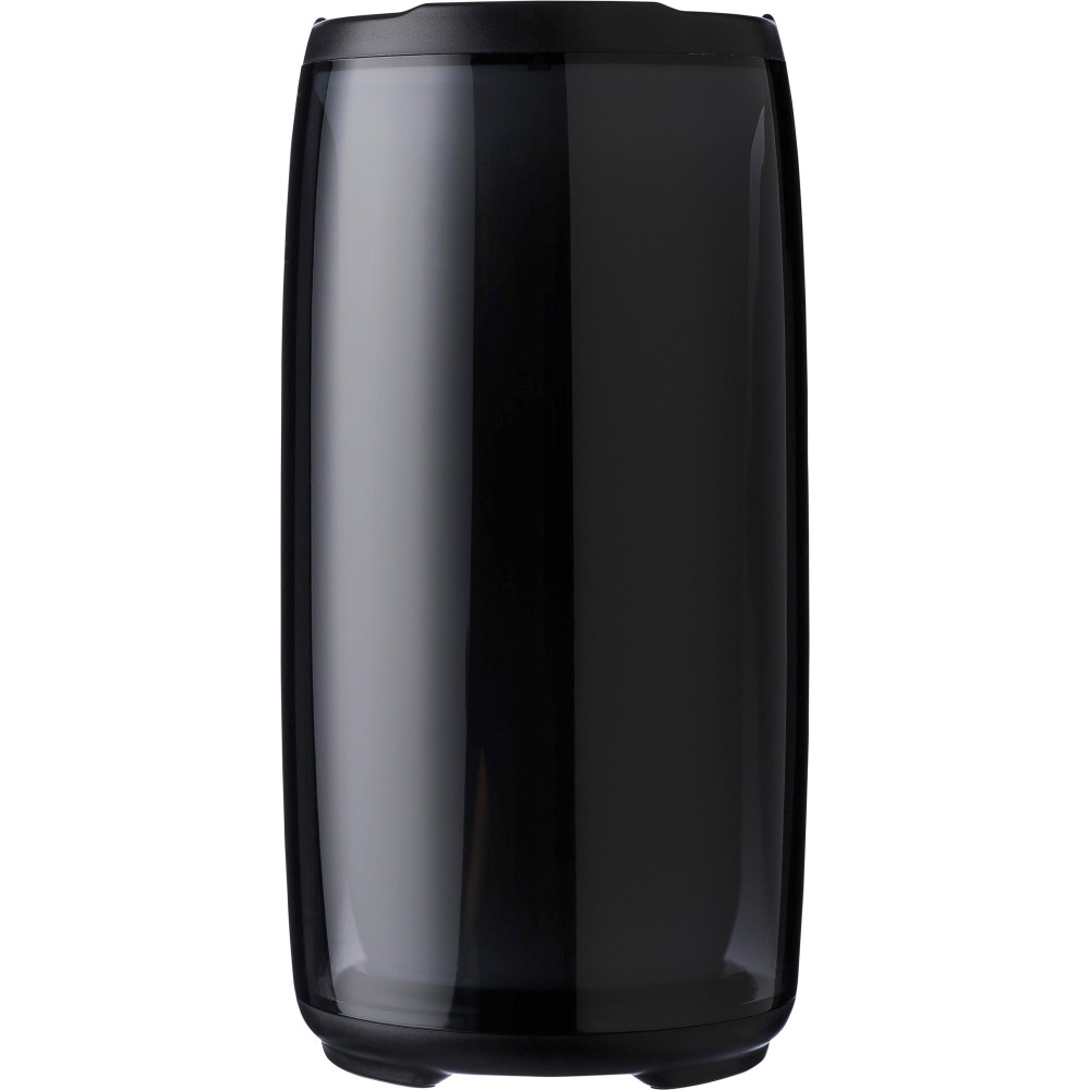ABS and PS outdoor speaker with multiple RGB light modes. IPX6 rated. 5W output, DC 5V input, 1200mAh built-in rechargeable battery, and 3.5 hours of playing time. Working distance of 15-20 meters, signal-to-noise ratio of 87 dB. Frequency range: 100 Hz to 20 kHz. Includes 30 cm Type-C charging cable. Wireless connection technology: 4.2. Individually packaged in a brown cardboard box. [ENG] Logodruck: Tampondruck
