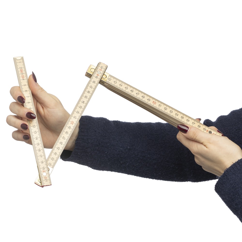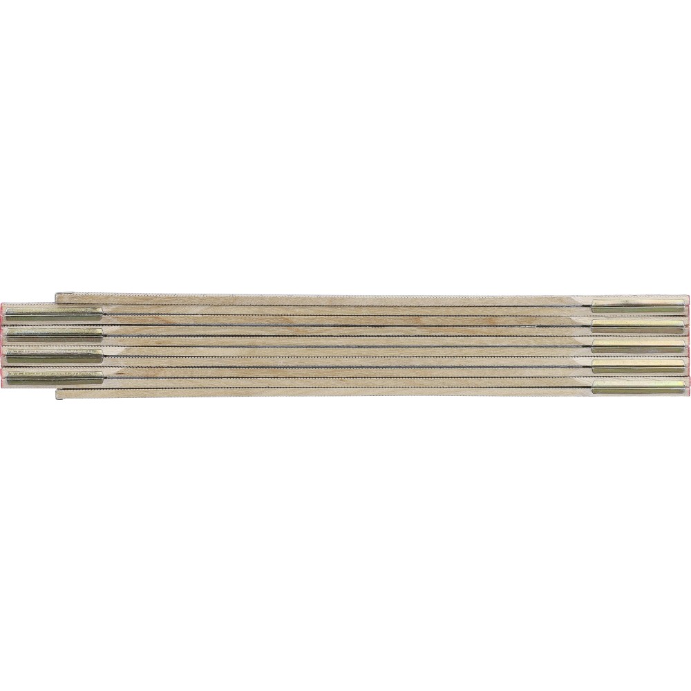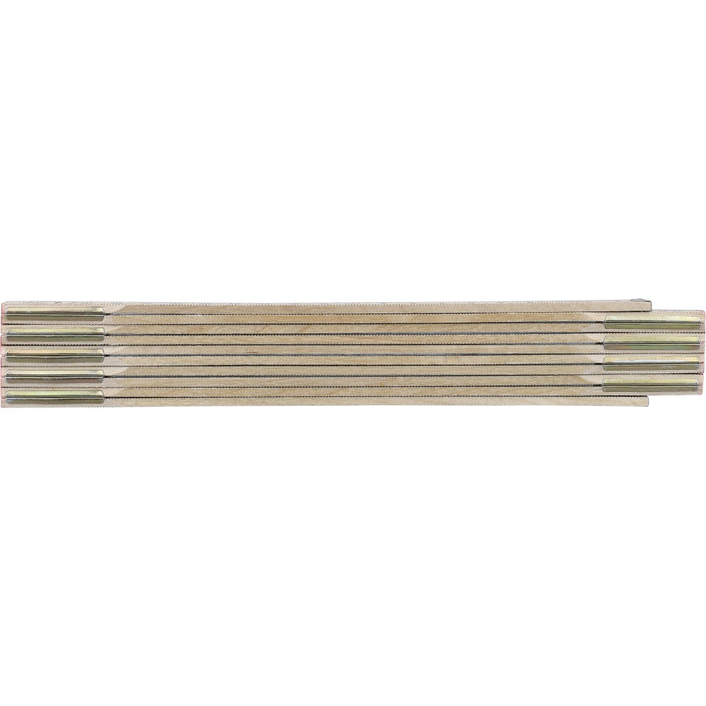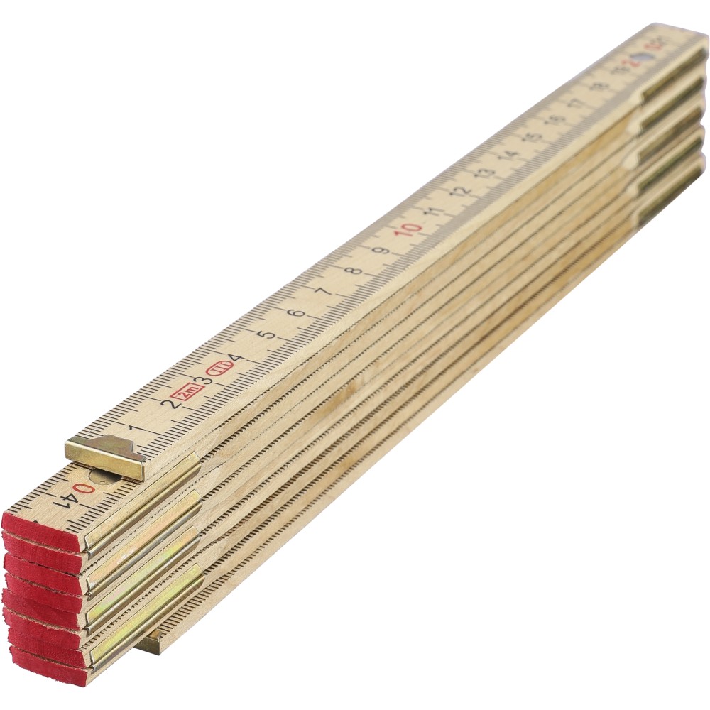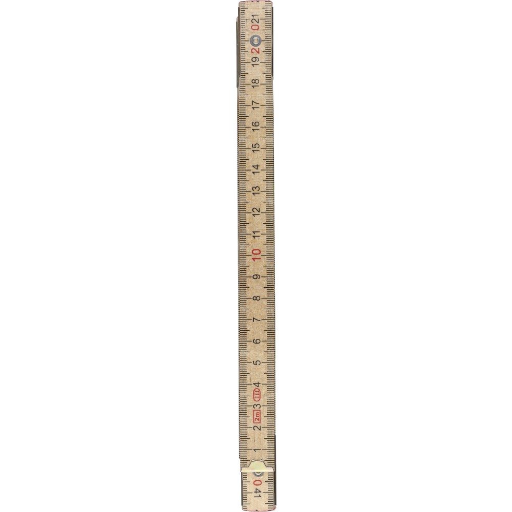Birchwood foldable ruler with centimeter indication and 2 meter length. Consists of 10 segments with steel hinges for durability and stability, including a corner lock for secure use. Supplied in a paper sleeve. [ENG]