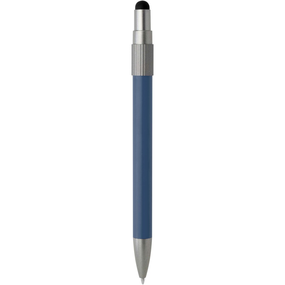 Ballpoint pen with stylus and fidget spinner, combining practicality with a playful design. The pen is made from RCS certified recycled aluminium and features a smooth push mechanism and a stylus tip for touchscreen use. A built-in fidget spinner on top adds a stress-relieving touch (just flick to activate). Pen ink colour: black. Writing length: 1000 metres. [ENG]