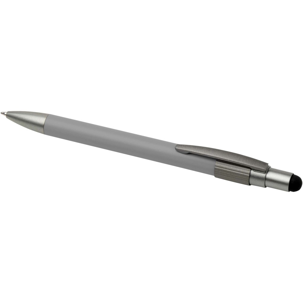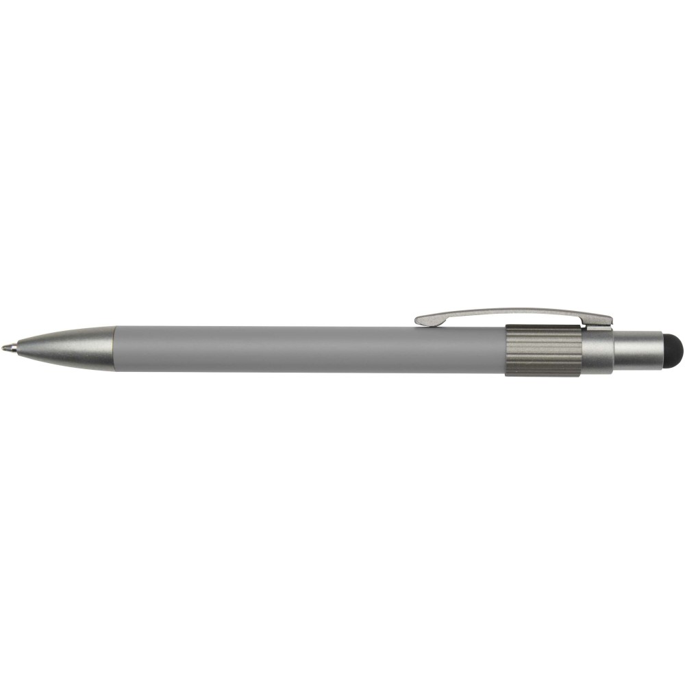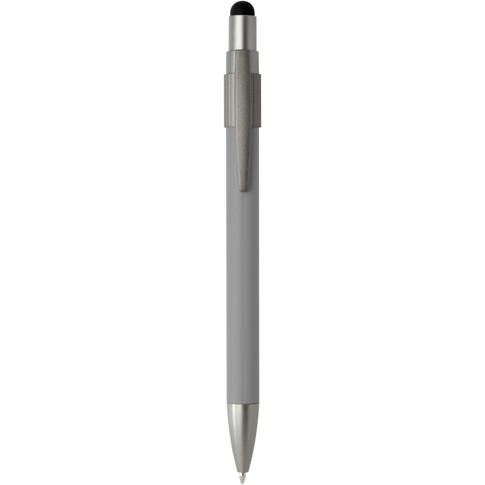 Ballpoint pen with stylus and fidget spinner, combining practicality with a playful design. The pen is made from RCS certified recycled aluminium and features a smooth push mechanism and a stylus tip for touchscreen use. A built-in fidget spinner on top adds a stress-relieving touch (just flick to activate). Pen ink colour: black. Writing length: 1000 metres. [ENG]