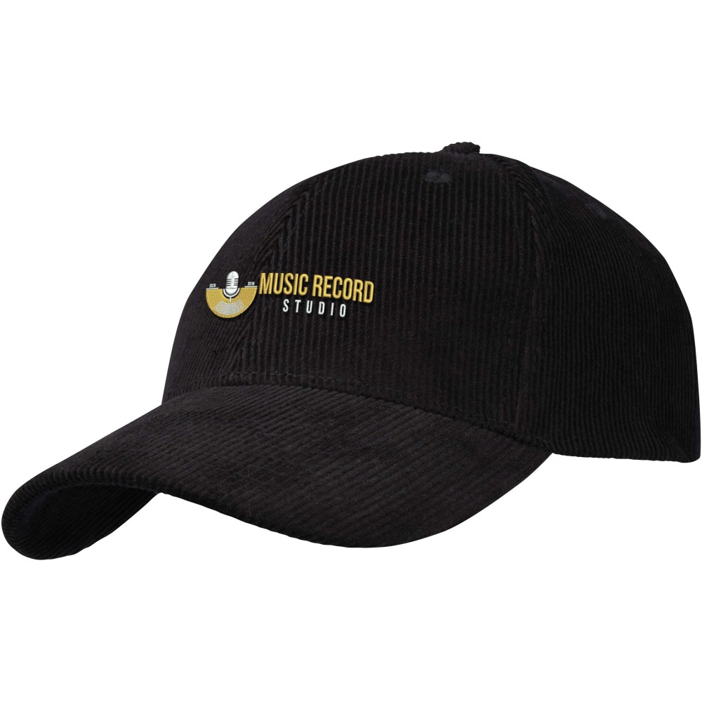 Hutton 6 panel recycled corduroy cap, Solid black [ENG]