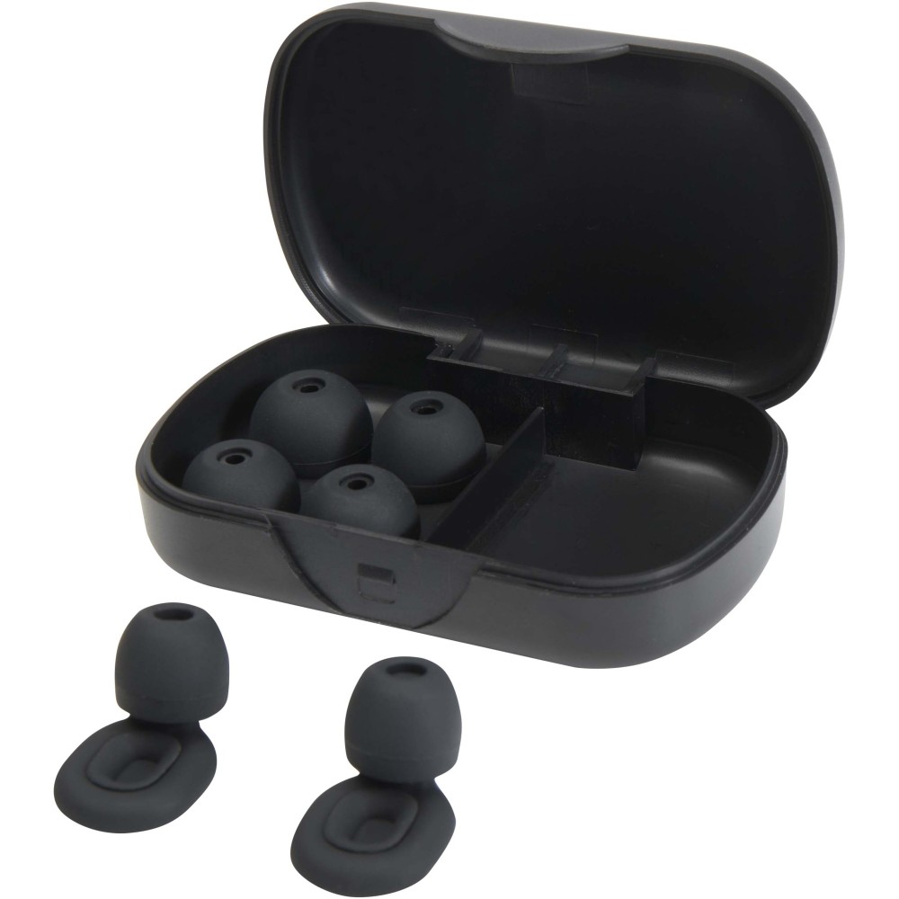 Enjoy peace and quiet wherever you are with these high-quality silicone earplugs?perfect for sleeping, studying, or traveling. Designed to effectively reduce noise, they help you focus or rest without distraction. Delivered in a compact case made from recycled plastic, making them easy to carry and hygienically stored. With three sizes included, you're guaranteed a comfortable, secure fit no matter your ear shape. [ENG] Logodruck: Matricázás, Tampondruck