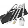 Grillbesteck aus Edelstahl, 4-tlg. bestehend aus Zange, Fleischgabel, Pinsel und Wender, verpackt in einem Etui aus Polyester (600D) mit Reißverschluss und Tragegriffen. Logodruck: Gravur, Siebdruck