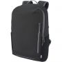 Wasserabweisender Laptop-Rucksack aus GRS-zertifiziertem Recyclingmaterial, einschließlich der Reißverschlüsse. Er verfügt über ein gepolstertes 15" Laptopfach mit seitlicher Öffnung für schnellen Zugriff, mehrere Netztaschen, eine Fronttasche mit Reißverschluss und reflektierende Paspeln für bessere Sichtbarkeit. Das geformte und gepolsterte Rückenteil sowie der verstellbare Brustgurt sorgen auch bei voller Beladung für hohen Tragekomfort. Der Hauptstoff, das Futter, die Gurte und die Reißverschlüsse bestehen aus recyceltem GRS-Material. Kapazität: 21 Liter. PVC frei.
