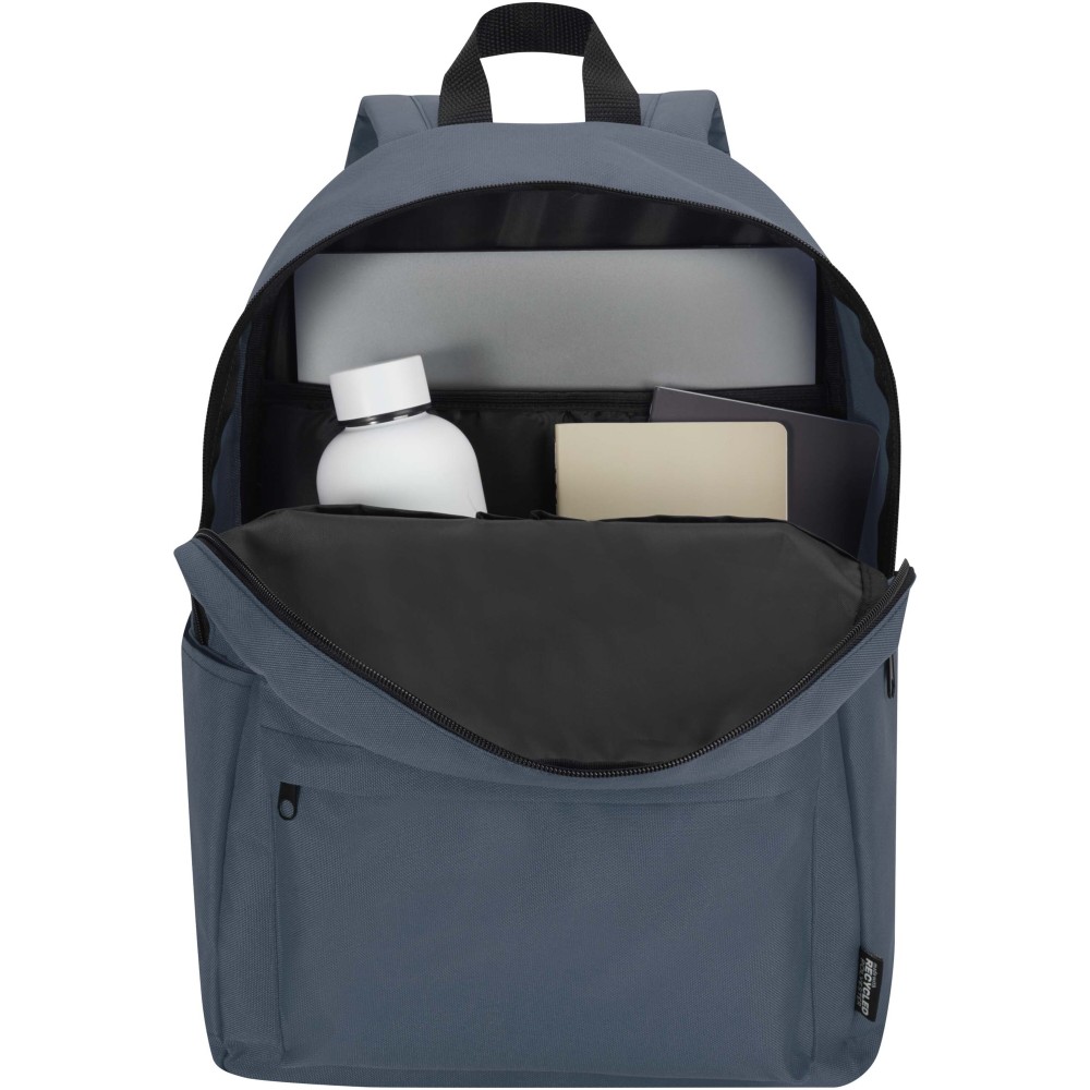 Made from water-repellent, GRS certified recycled polyester, the Byron city laptop backpack is your everyday companion for work, school, or city adventures. With a streamlined 16 litres capacity and a dedicated padded sleeve for laptops up to 14", it offers practical storage in a clean, modern design. Inside, you'll find smart organisational pockets to keep your gear in order, while two side pockets and a zipped front pocket provide quick access to essentials. Whether you're commuting or exploring the city, this backpack delivers style, comfort, and functionality every step of the way. [ENG] Logodruck: Siebdruck