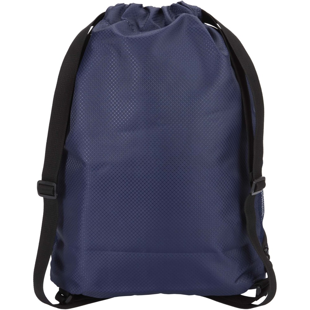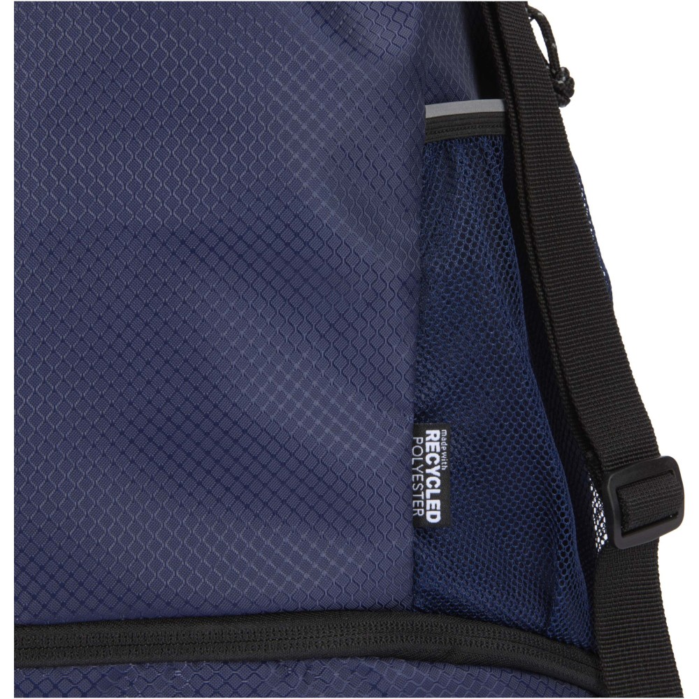 The Nomad sports drawstring bag is made from GRS certified recycled ripstop fabric with a water-repellent finish, GRS certified RPET lining, and reflective elements. It is designed for people with an active lifestyle and is suitable for daily exercise and sports activities. The bag has a spacious main compartment that can hold clothing, a towel, or even a basketball. A separate bottom compartment keeps shoes or used clothes apart from other items. It also includes two side mesh pockets with reflective details, one hidden zipped pocket for valuables, and adjustable webbing shoulder straps for comfortable carrying. [ENG]