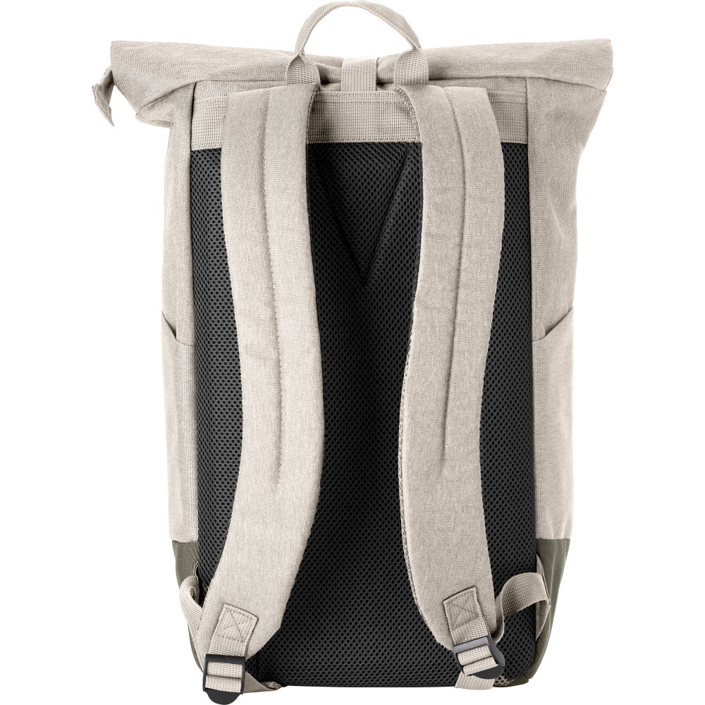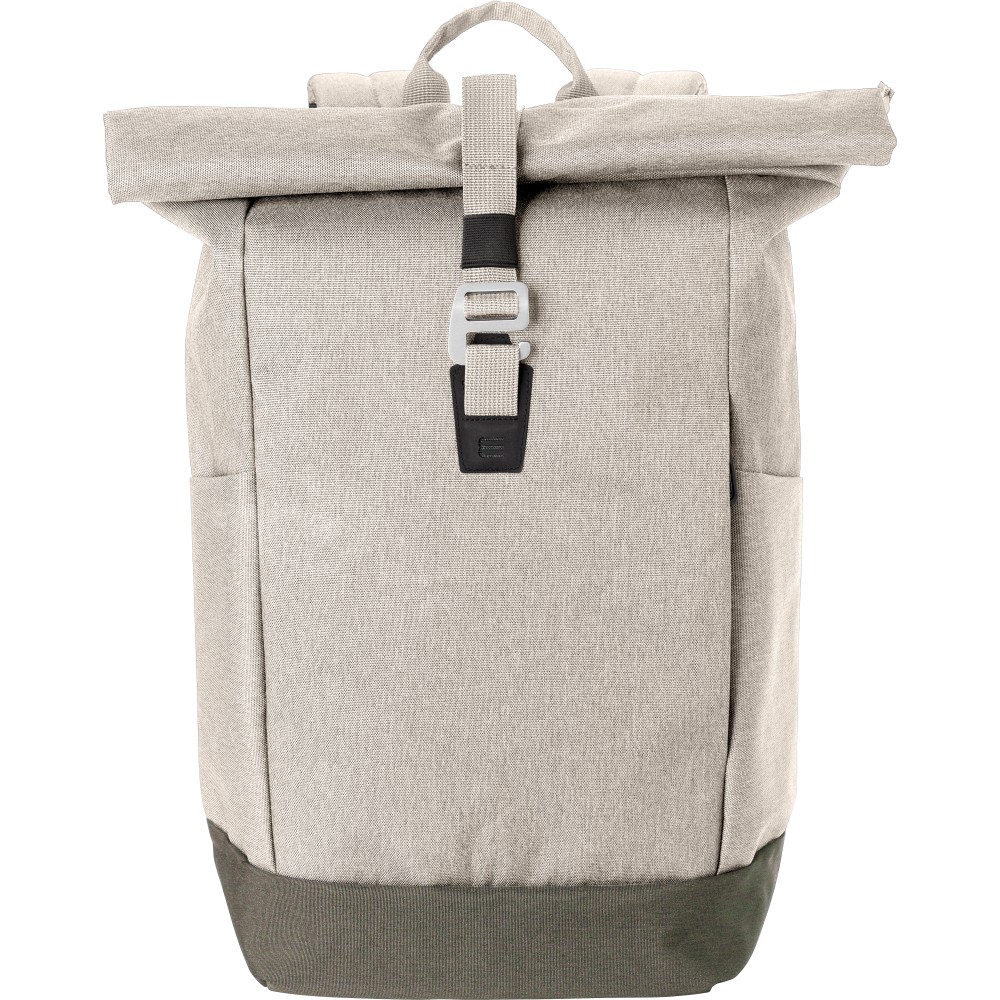 Dieser Rolltop-Rucksack ist aus Polyester (600D) gefertigt. Er verfügt über ein großes Reißverschlussfach mit zwei Steckfächern und einem Laptopfach. Auf der Vorderseite befindet sich ein Fach mit Reißverschluss. Das Rückenteil und die Gurte sind gepolstert. Metallhaken zum Verschließen. Logodruck: Siebdruck
