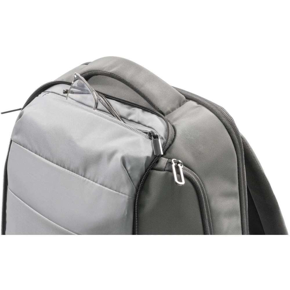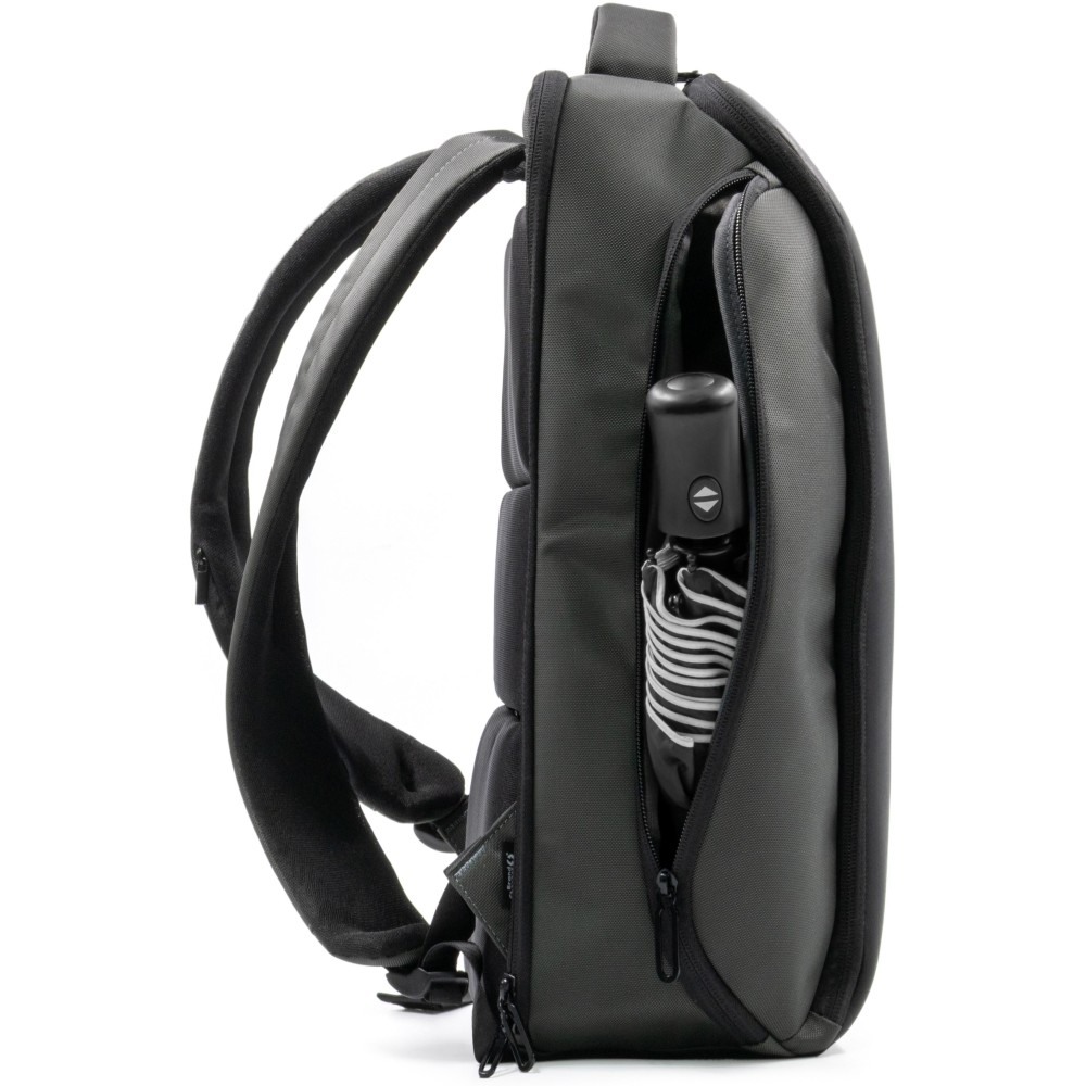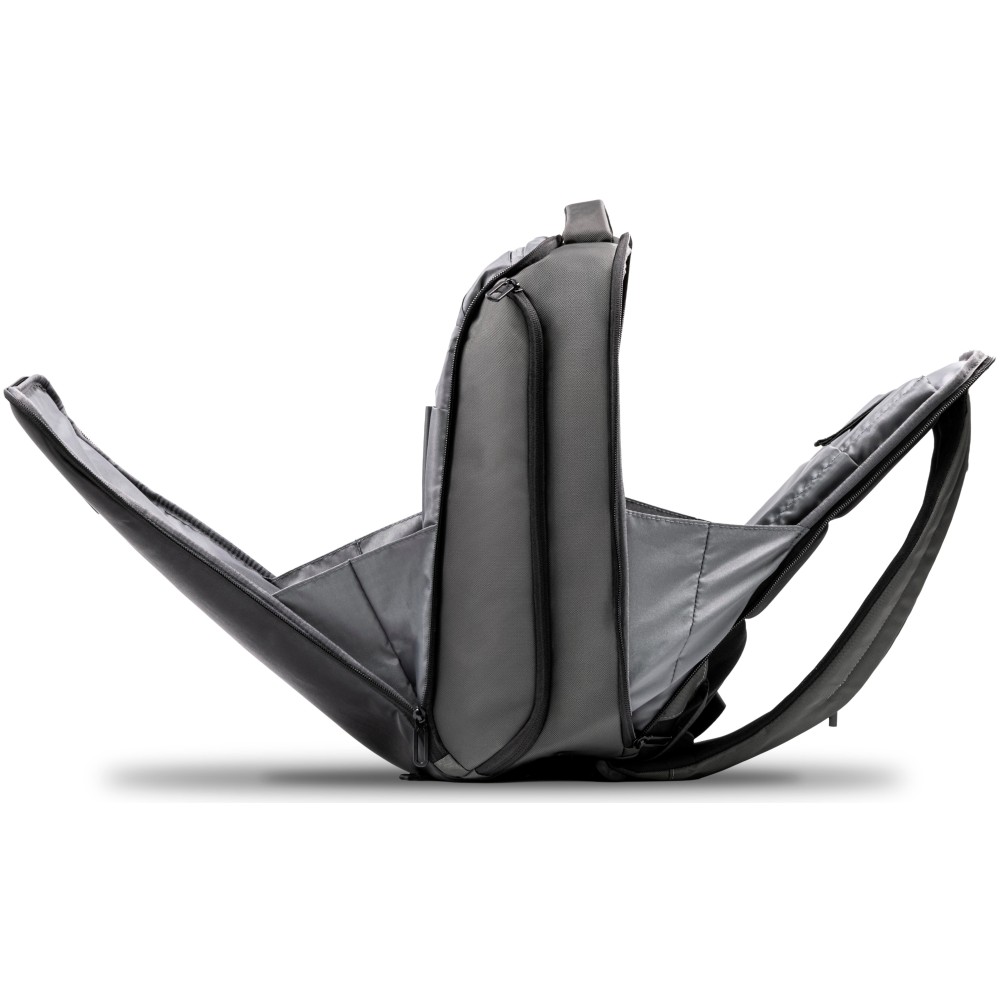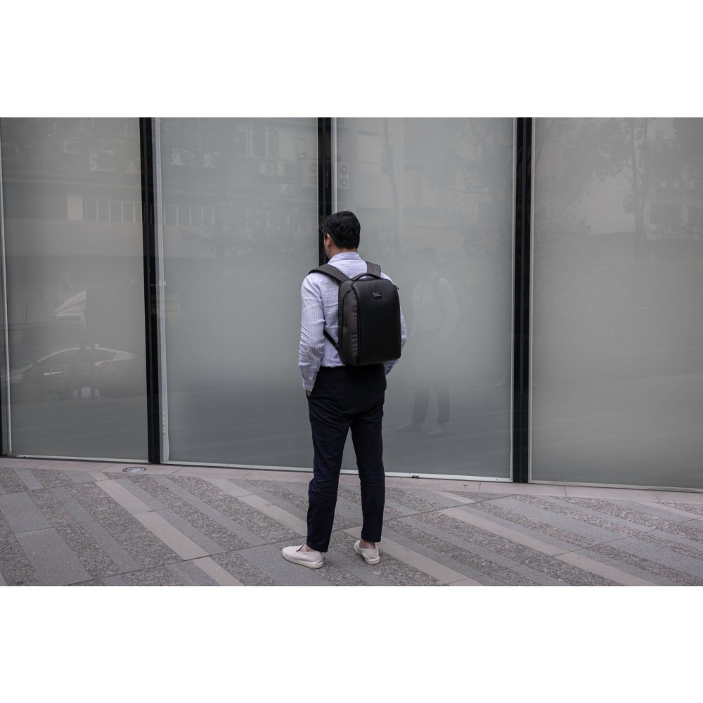 The Virtuo Apex Backpack combines sustainability, functionality, and premium craftsmanship in one sleek design. Made from 800D water- and stain-repellent recycled ballistic fabric and accented with vegan leather, it offers a 22 l capacity with a padded compartment for laptops up to 16 inches. Designed for work, travel, and daily use, it features an anti-theft back plate compartment, integrated eyewear compartment, two side compartments, and a trolley strap. Soft-touch back ventilation padding adds comfort, making the Apex a reliable and stylish companion wherever you go. [ENG]