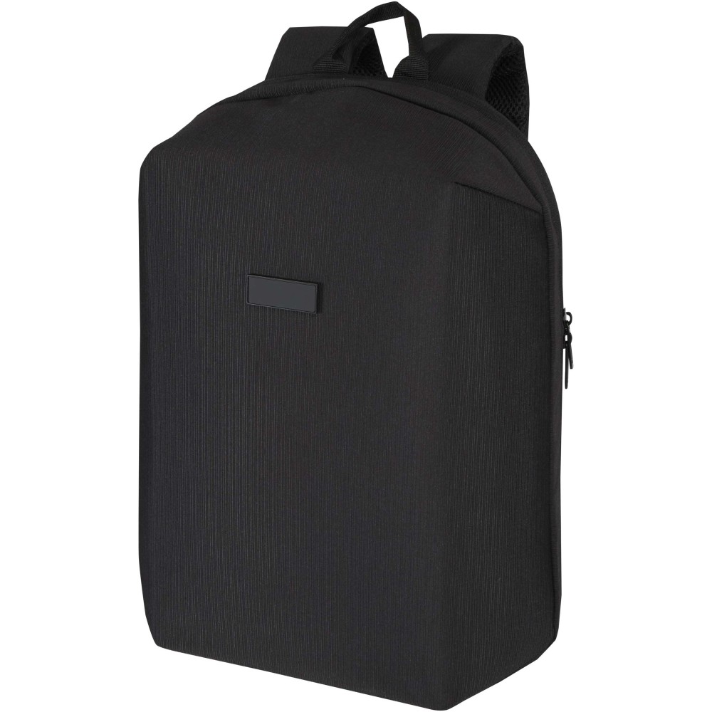Crafted from recycled jacquard polyester with a colour-matching RPET lining, the Luma 15" anti-theft backpack combines smart security with sleek style for people on the move. Anti-theft features include lockable zippers (lock not included) and a hidden back pocket that doubles as a trolley strap. The fabric is also water-repellent to protect your belongings from light rain. Inside, you will find a padded laptop compartment for devices up to 15", a dedicated tablet pocket, an open sleeve pocket with a pen loop, and organised storage to keep essentials neatly in place. The design also features padded shoulder straps, a breathable back panel, and metal plates on the front. Whether you are cycling to work, navigating a busy airport, or heading to class, the Luma backpack delivers all-day comfort with style. [ENG]