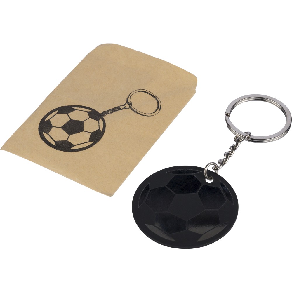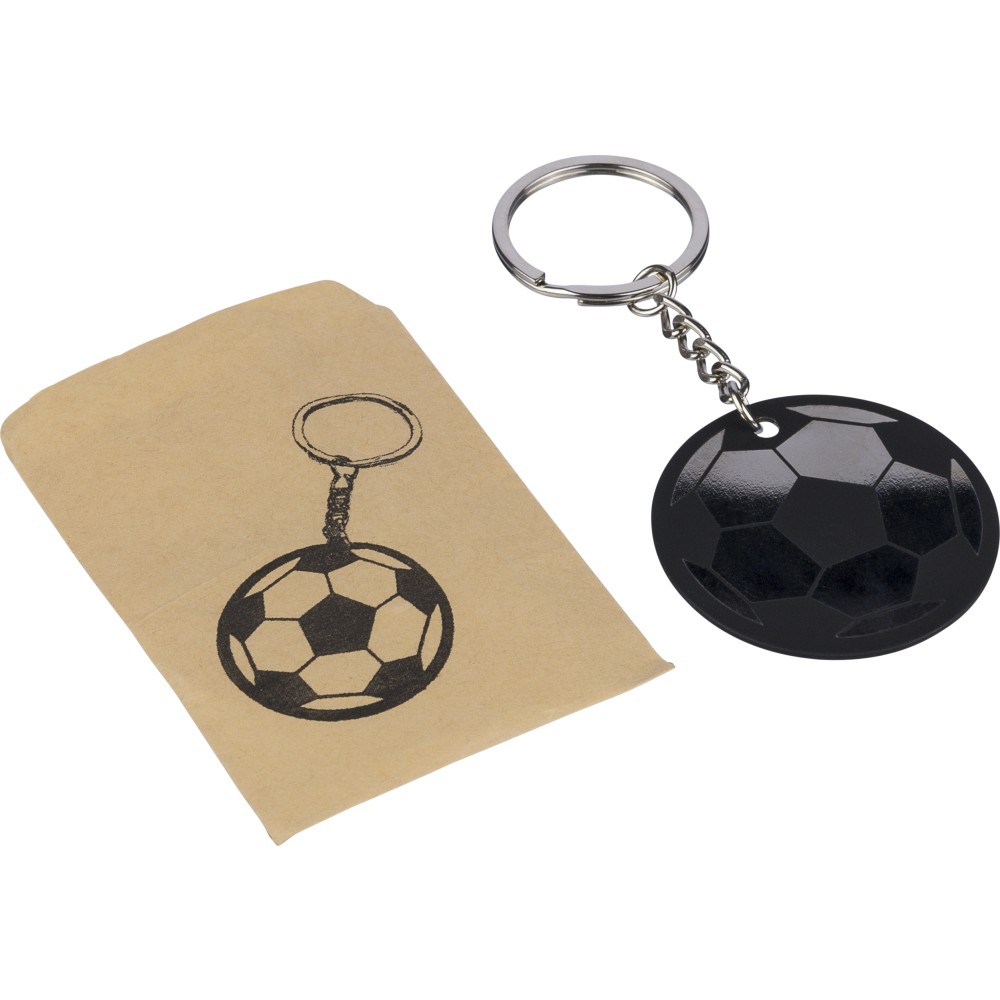 Recycled stainless steel soccer ball keychain Ciro, black [ENG]