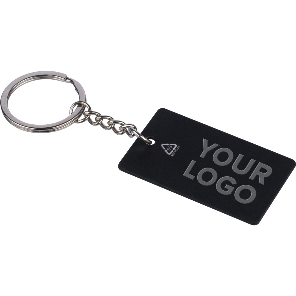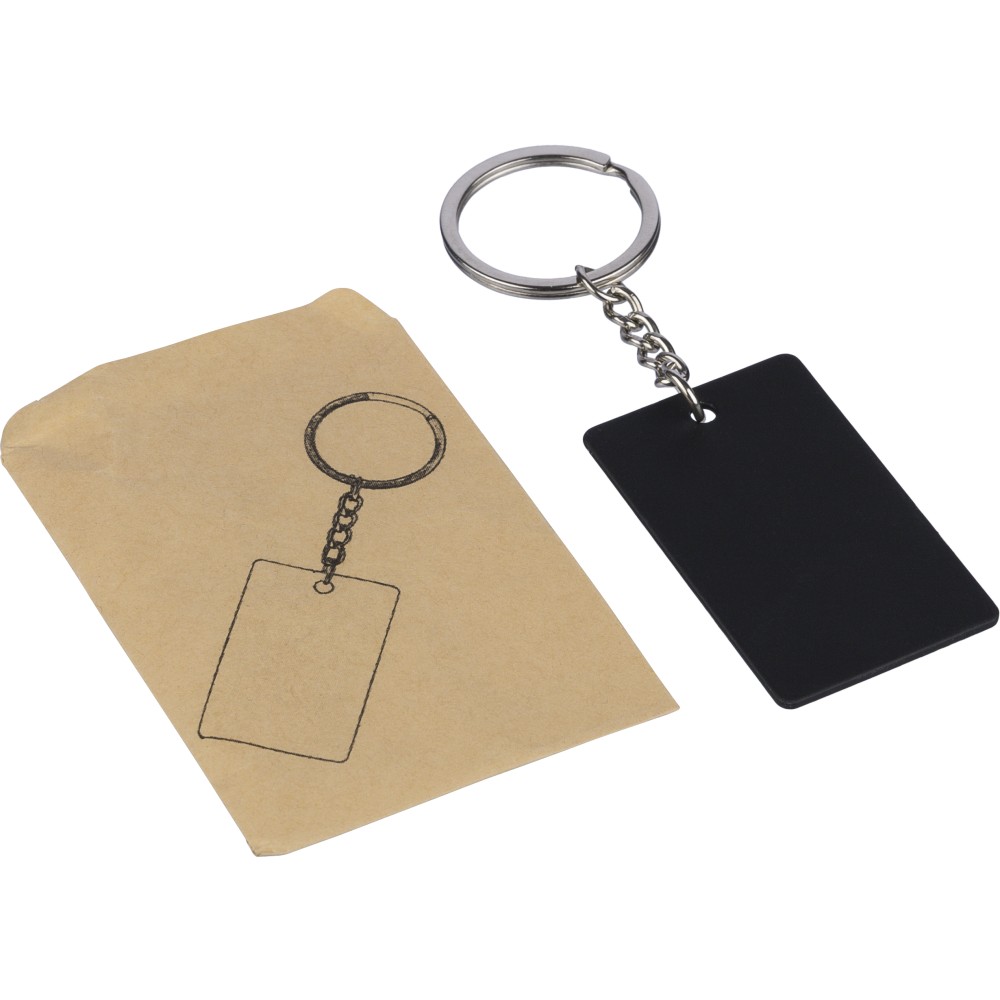Recycled stainless steel rectangular keychain Jax, black [ENG]
