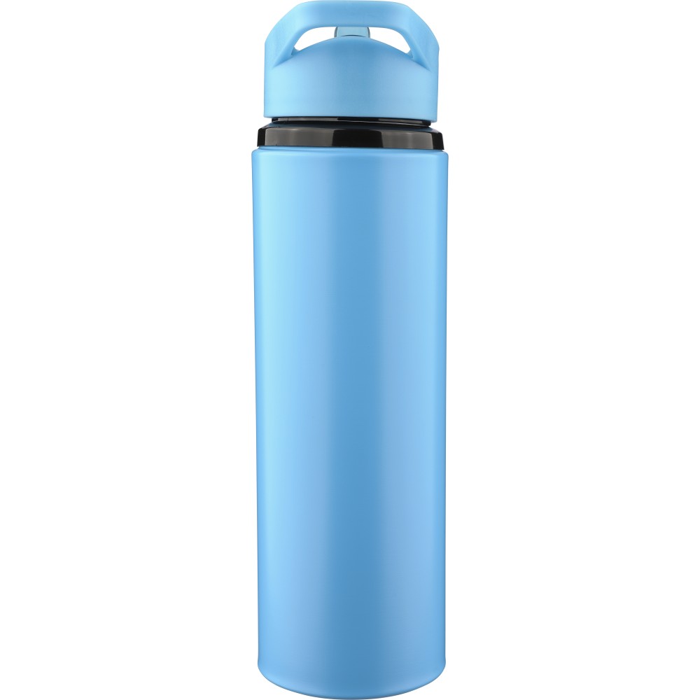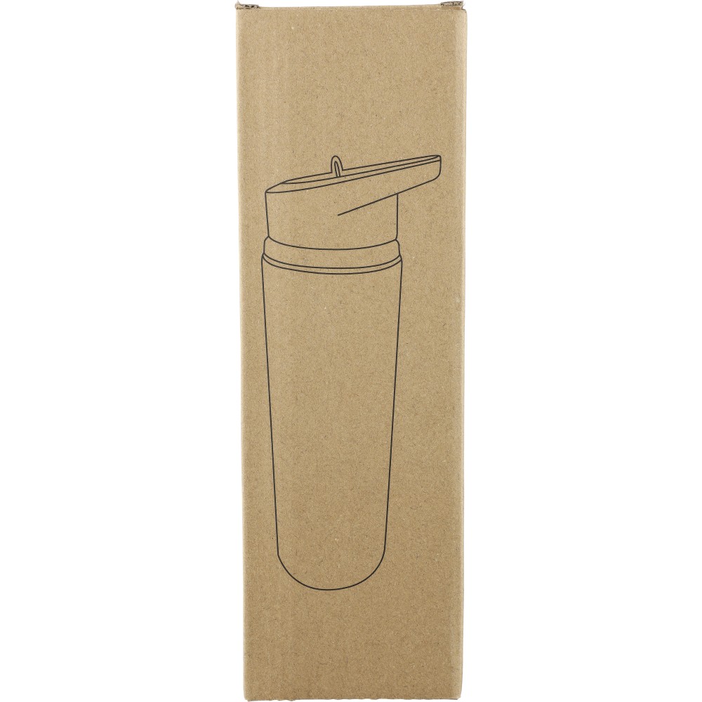 Recycled stainless steel drinking bottle (500 ml), single-walled with stainless steel 304, PP screw lid with carrying loop, foldable spout, and internal straw. Suitable for cold drinks only. Engraved recycled logo. Packed in a brown cardboard box. [ENG]