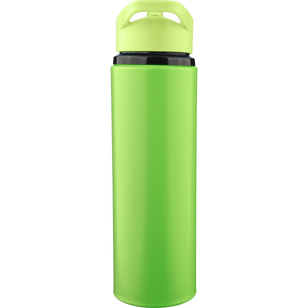 Recycled stainless steel drinking bottle (500 ml), single-walled with stainless steel 304, PP screw lid with carrying loop, foldable spout, and internal straw. Suitable for cold drinks only. Engraved recycled logo. Packed in a brown cardboard box. [ENG]
