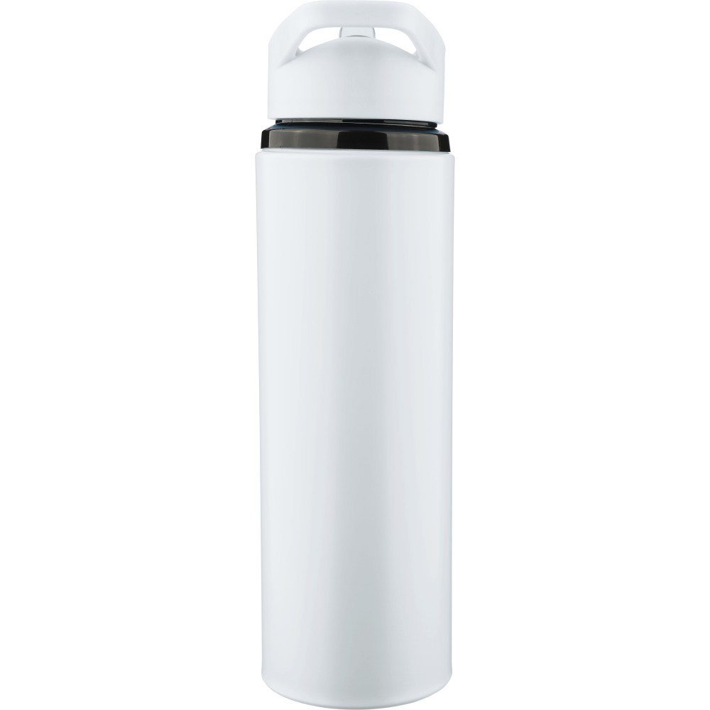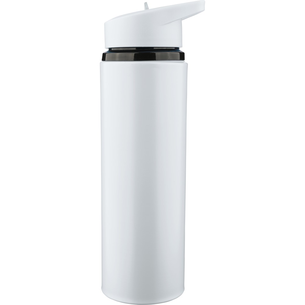 Recycled stainless steel drinking bottle (500 ml), single-walled with stainless steel 304, PP screw lid with carrying loop, foldable spout, and internal straw. Suitable for cold drinks only. Engraved recycled logo. Packed in a brown cardboard box. [ENG]