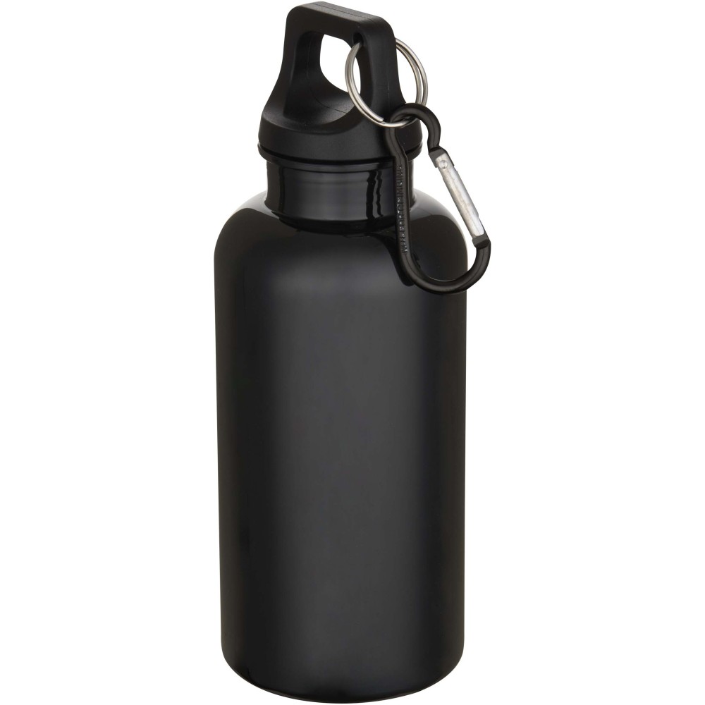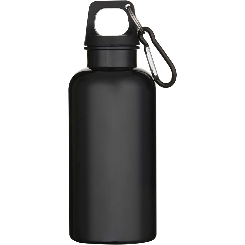 Staying hydrated at all times is possible with this durable yet lightweight 400 ml water bottle made from RCS certified recycled PET. It is the perfect companion while exercising, on day trips or at the office. The single-walled Oregon bottle has a twist-on lid and offers plenty of space to add any kind of logo. Clip the attached carabiner (not suitable for climbing) securely to a bag to avoid losing it. Manufactured in compliance with the EFSA approved PET recycling process. [ENG]