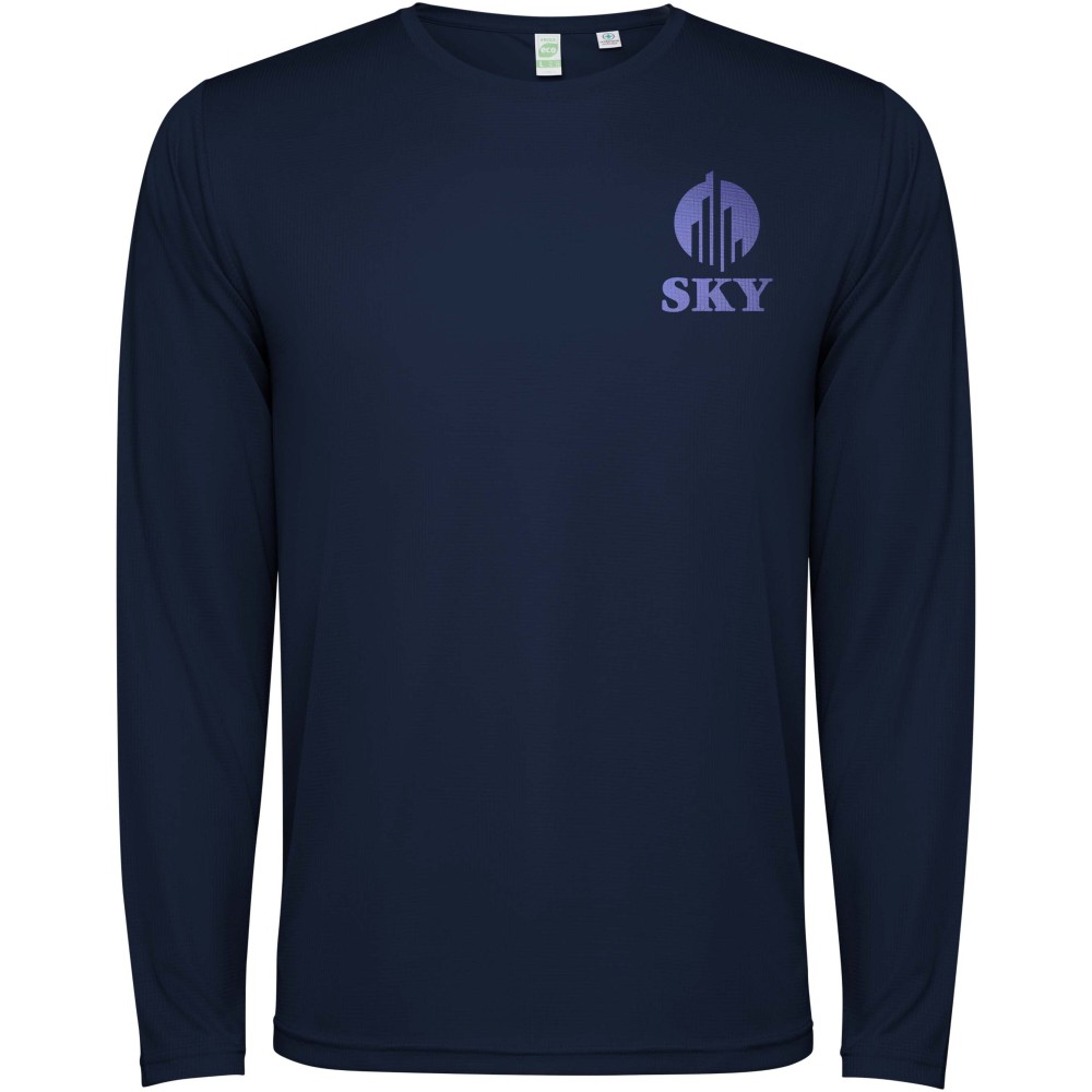 Kids long-sleeve unisex technical t-shirt. Collar with matching seams. Back hem slightly longer than the front. Side seams shifted forward. [ENG] Logodruck: Stickerei, Siebdruck