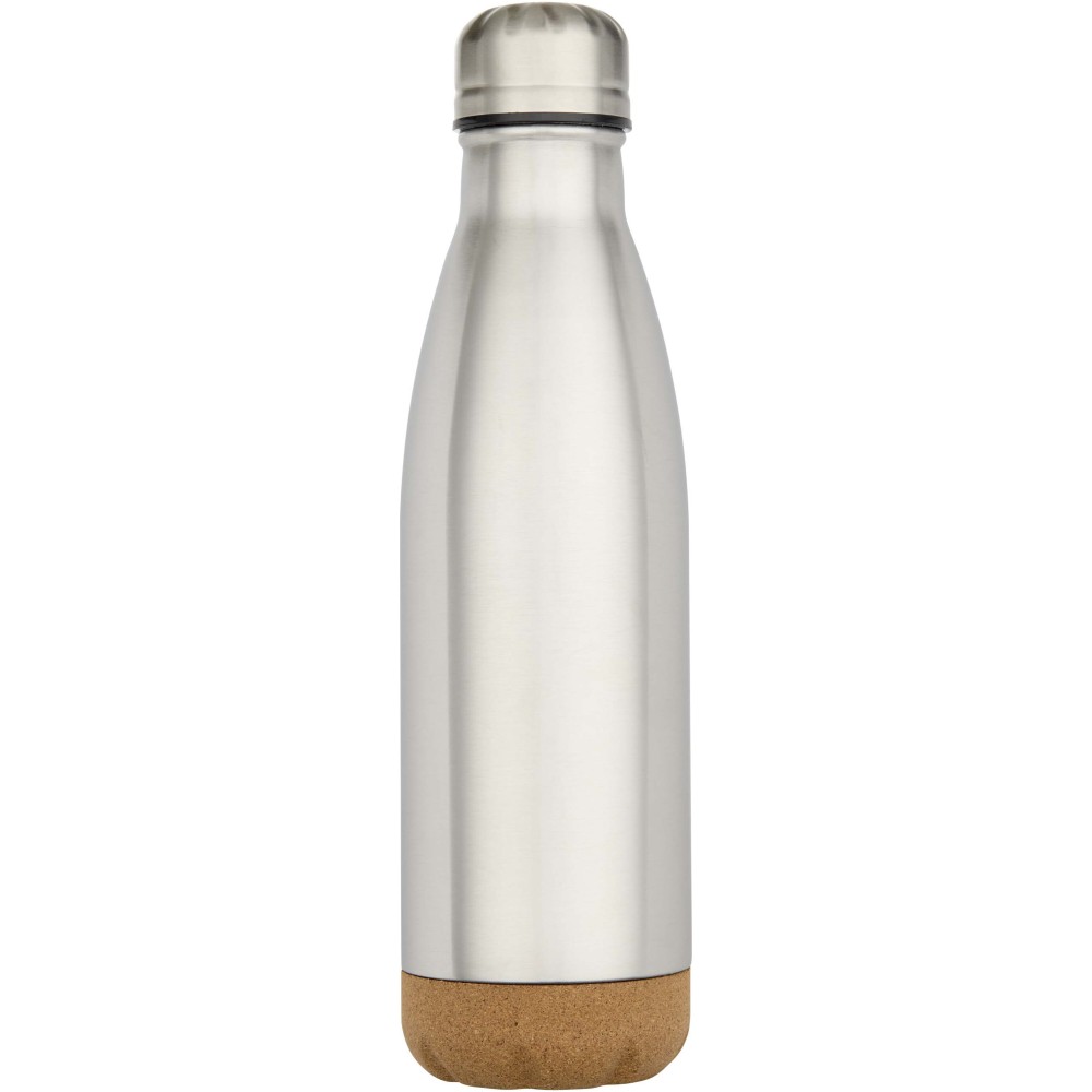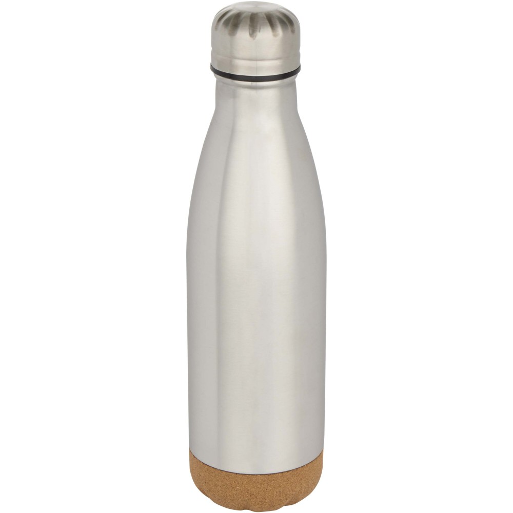 Vacuum insulated stainless steel water bottle with cork details at the bottom. The double-wall insulation keeps drinks hot for 12 hours and cold for 48 hours. Presented in a recycled cardboard gift box. Volume capacity: 500 ml. [ENG] Logodruck: Gravur, Tampondruck