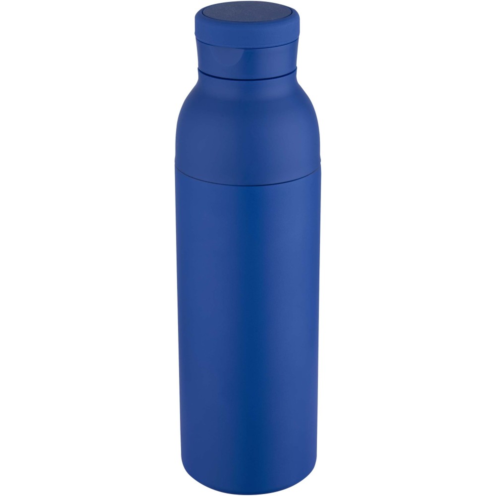 Double-walled, vacuum-insulated, RCS certified stainless steel water bottle featuring a discreet built-in silicone handle within the lid. Keeps drinks cold for 48 hours or hot for 12 hours. The two-piece construction makes cleaning easy, while the durable powder coating and copper plating ensure long-lasting performance. Presented in a recycled cardboard gift box. Volume capacity: 650 ml. [ENG]