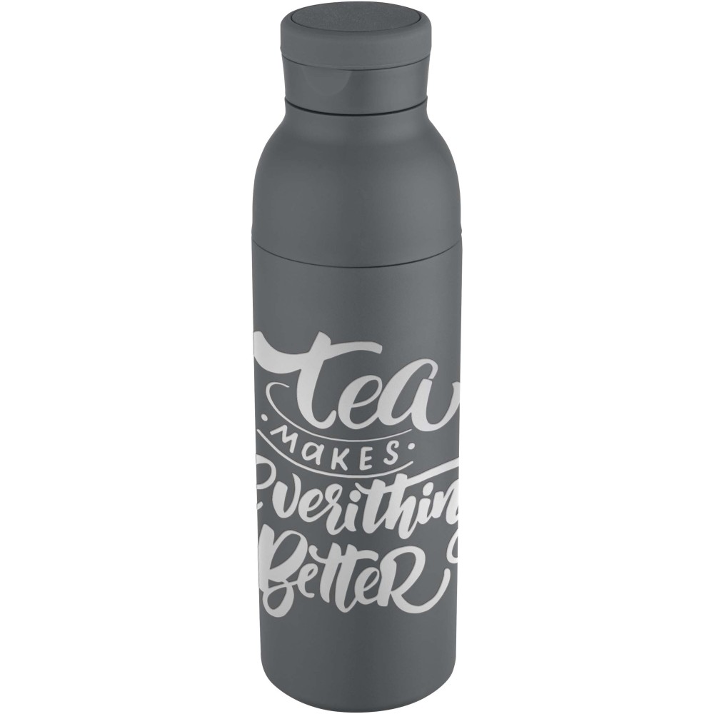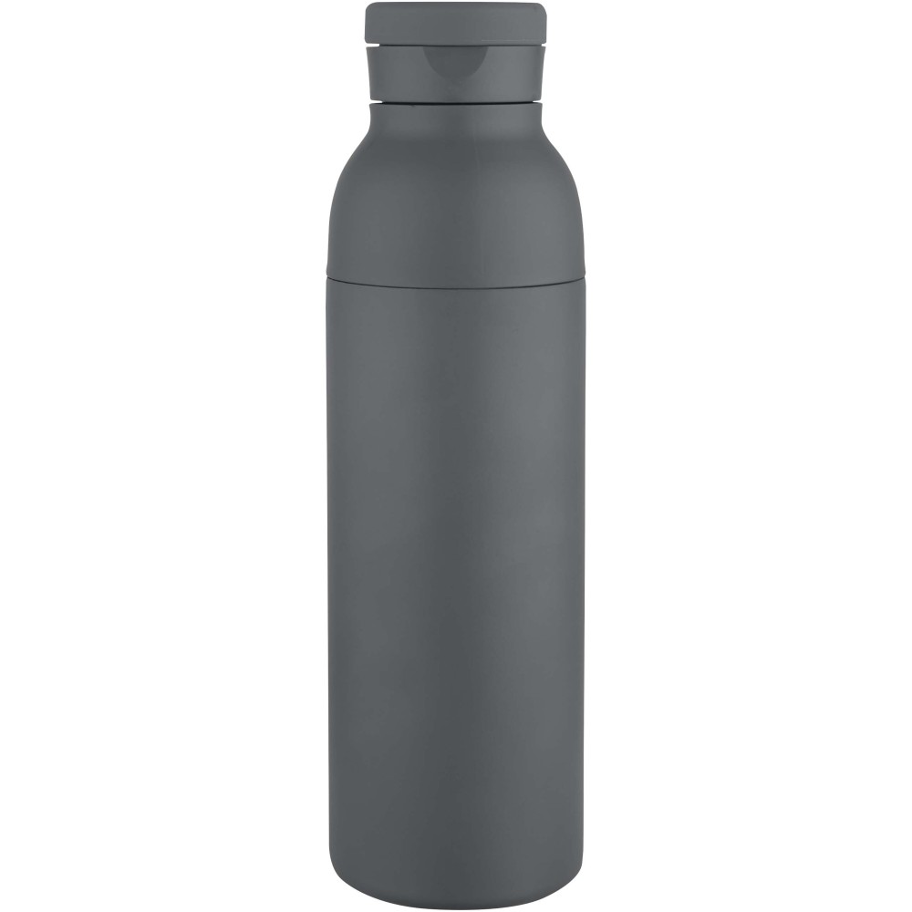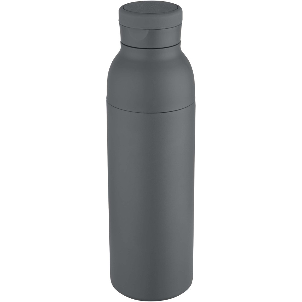 Double-walled, vacuum-insulated, RCS certified stainless steel water bottle featuring a discreet built-in silicone handle within the lid. Keeps drinks cold for 48 hours or hot for 12 hours. The two-piece construction makes cleaning easy, while the durable powder coating and copper plating ensure long-lasting performance. Presented in a recycled cardboard gift box. Volume capacity: 650 ml. [ENG]