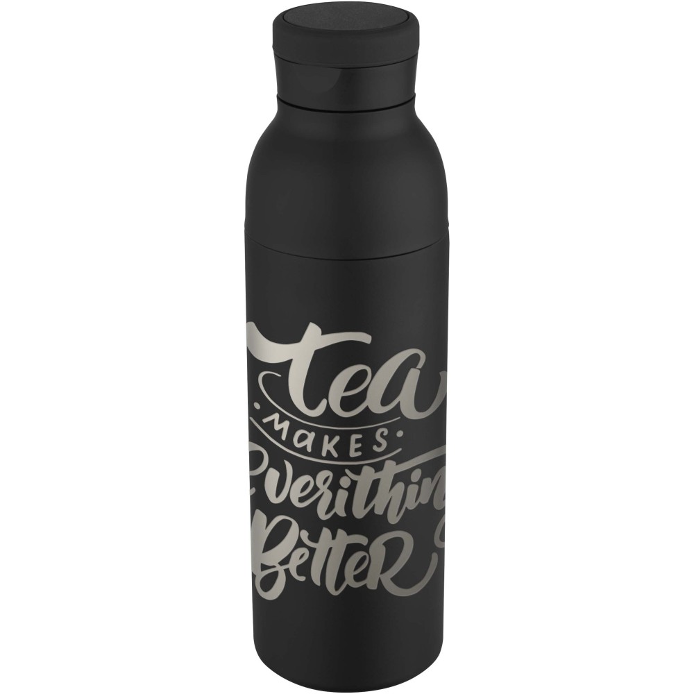 Double-walled, vacuum-insulated, RCS certified stainless steel water bottle featuring a discreet built-in silicone handle within the lid. Keeps drinks cold for 48 hours or hot for 12 hours. The two-piece construction makes cleaning easy, while the durable powder coating and copper plating ensure long-lasting performance. Presented in a recycled cardboard gift box. Volume capacity: 650 ml. [ENG]